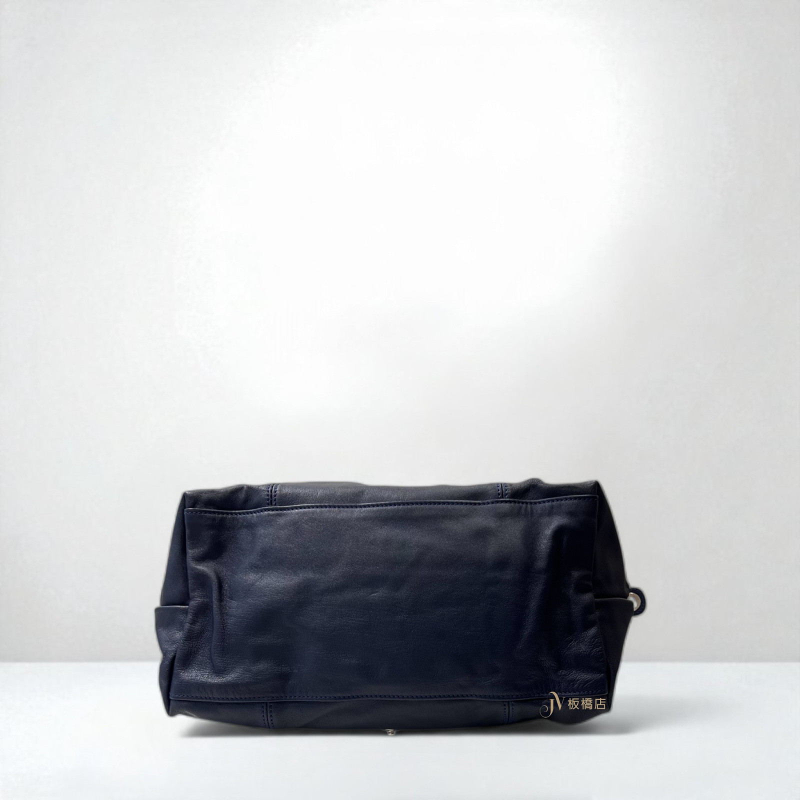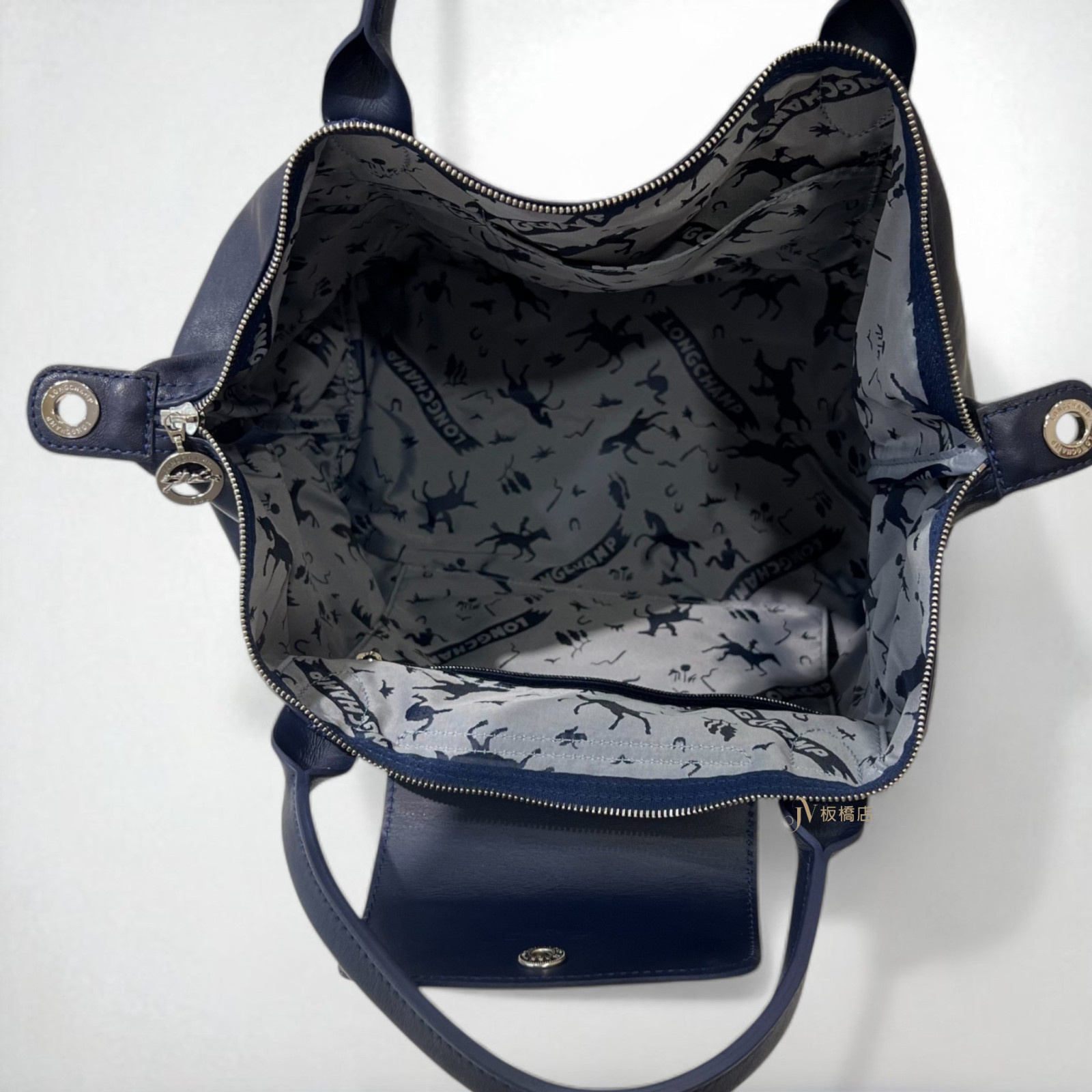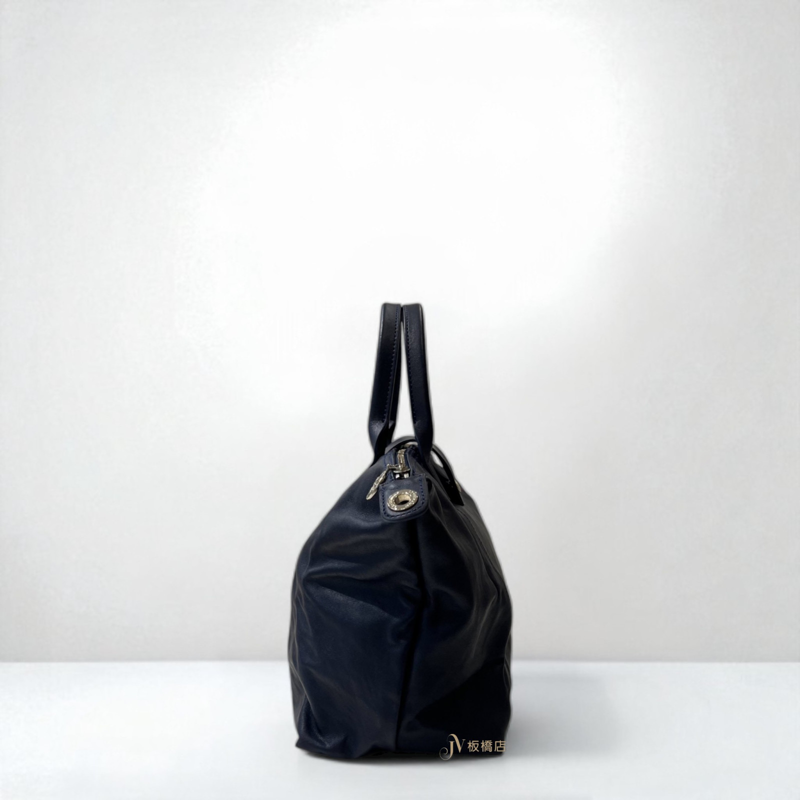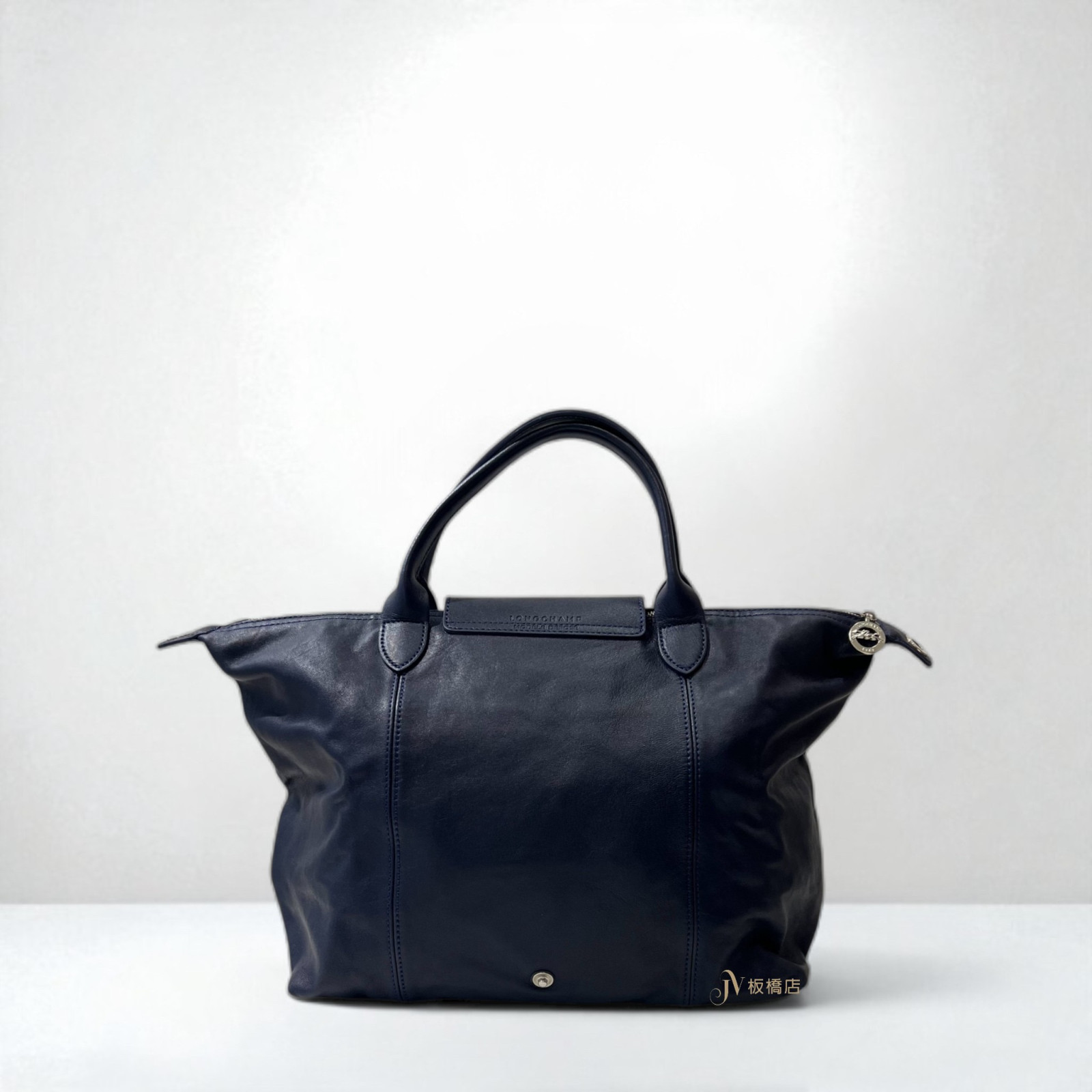 JY0365 Longchamp包包 Le Pliage Cuir深藍色小羊皮手提肩背包 (板橋店)