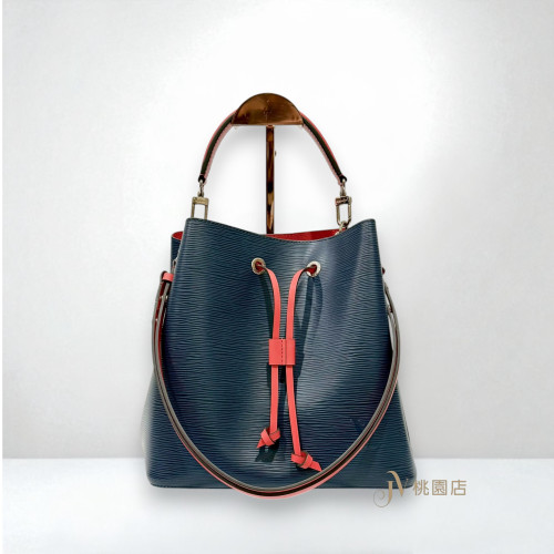 • JA1895 LV包包 深藍色拼紅色內裡epi牛皮Neo Neo提把水桶包MM (桃園店)