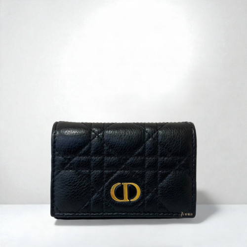JS1197 Dior卡包 Dior Caro Glycine黑小牛皮籐格紋金扣下蓋零錢卡包S5132UWHC_M900 (板橋店)
