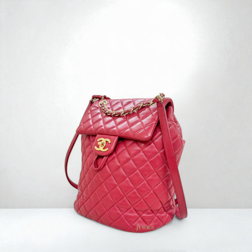 JA1976 CHANEL包包 紅色菱格紋羊皮金釦雙肩後背包 (桃園店)