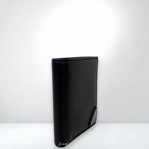 JS1292 PRADA皮夾 黑色防刮牛皮對開8卡短夾 (板橋店)