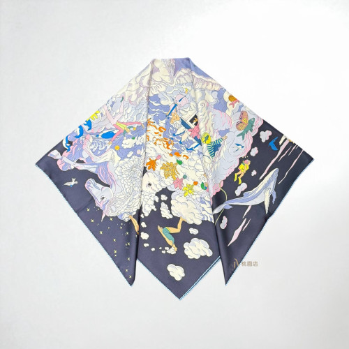 JA0224 HERMES方巾 巴黎星星咖啡絲方巾 (桃園店)