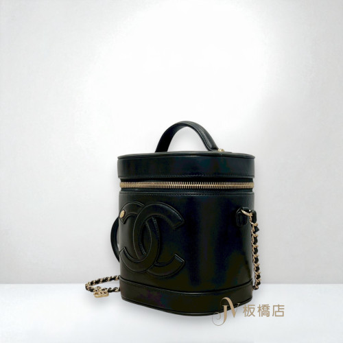 JS1118 CHANEL包包 黑色羊皮淡金釦提把斜背化妝盒 AS0323 (板橋店)